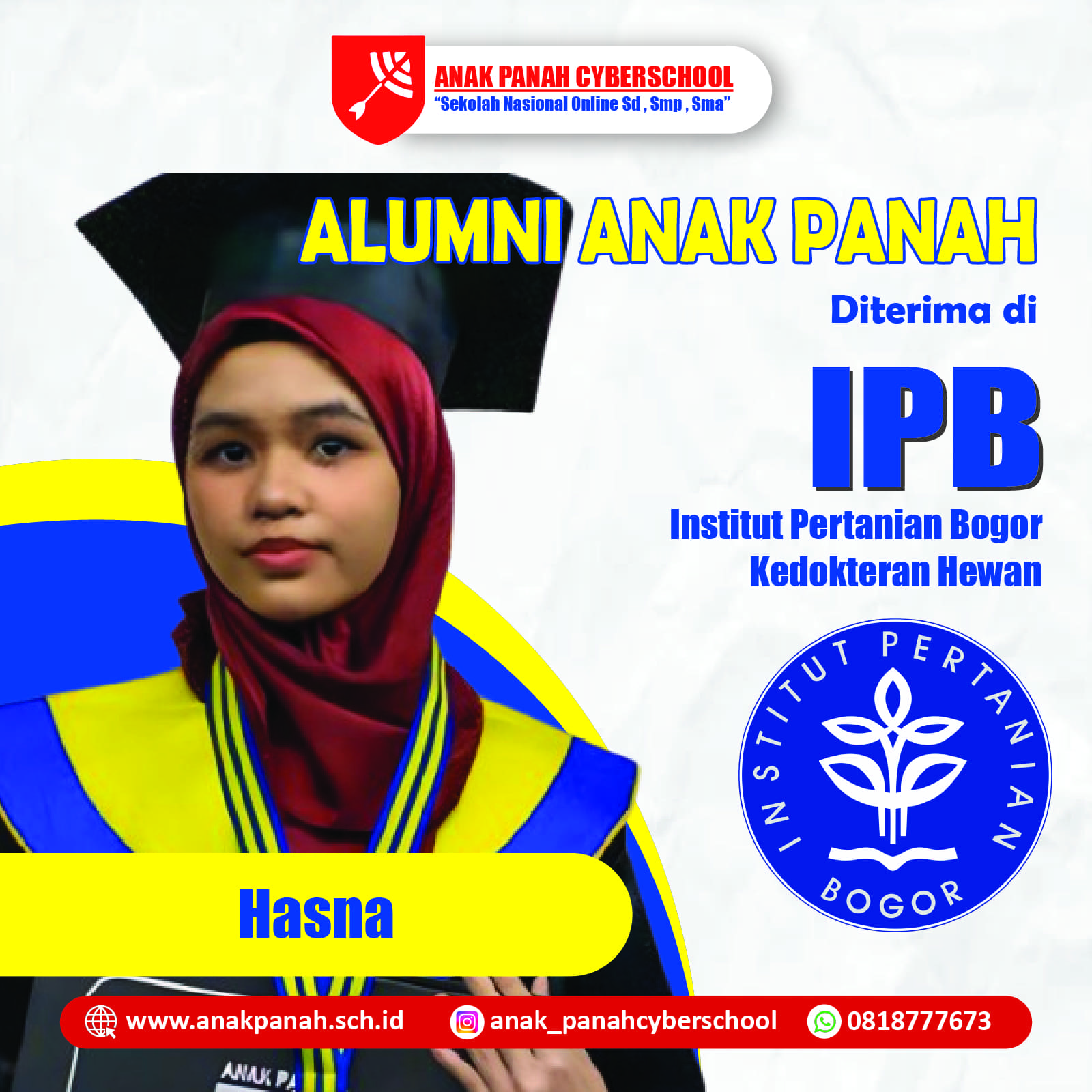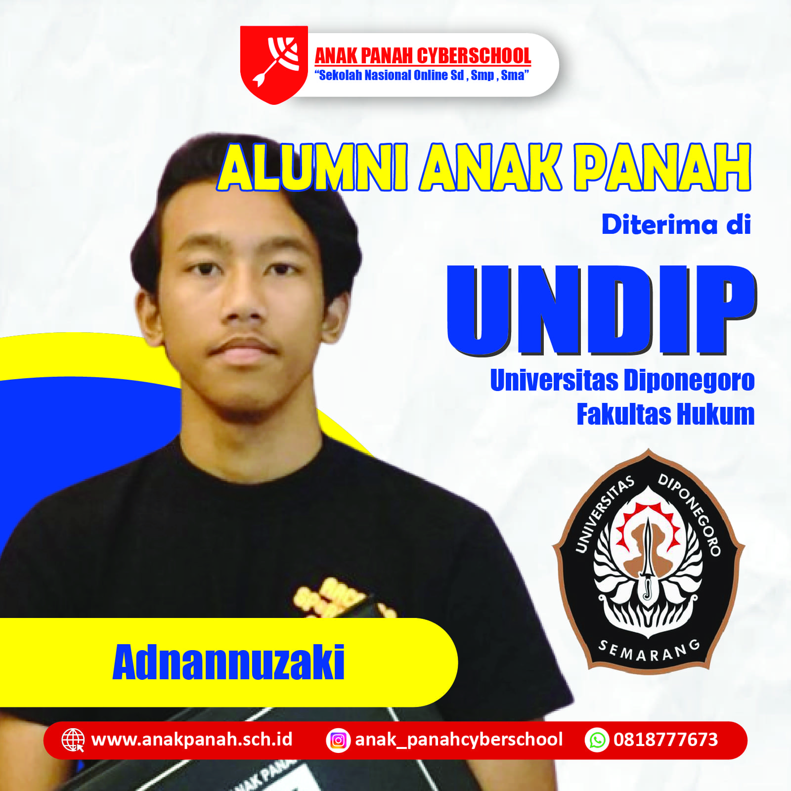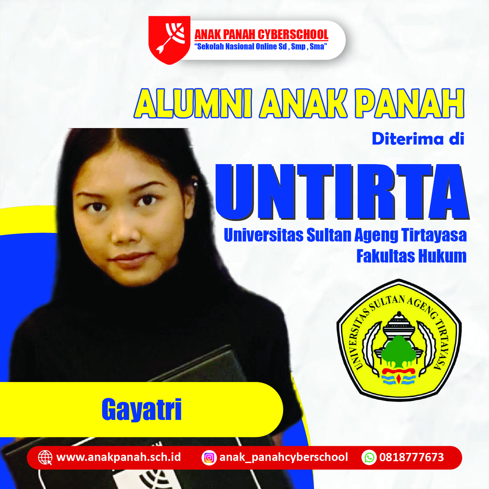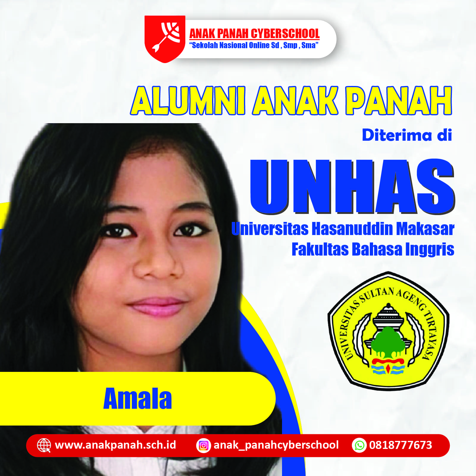 "Terima kasih Anak Panah, saya diterima di Universitas Sultan Ageng. Bangga jadi alumnus!"