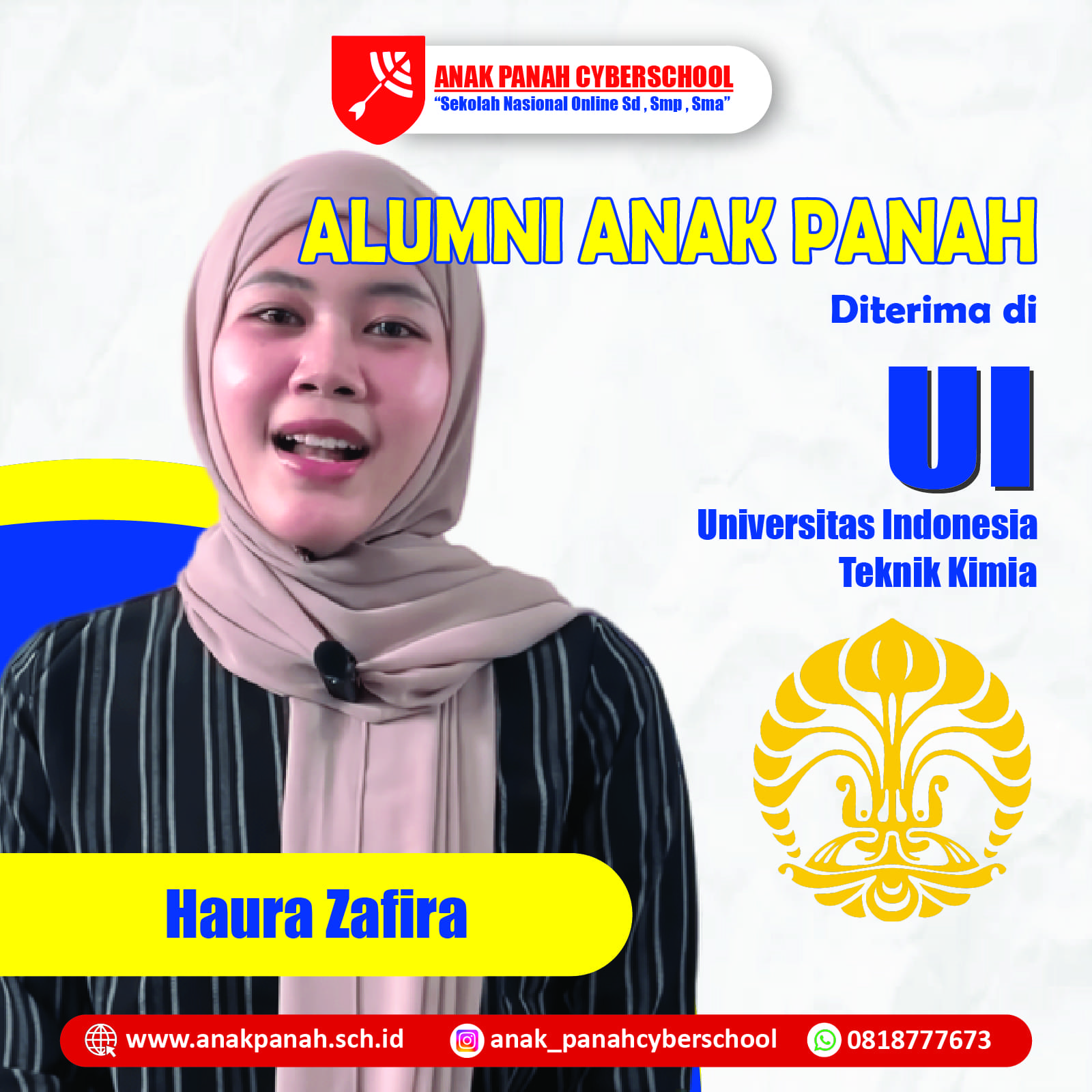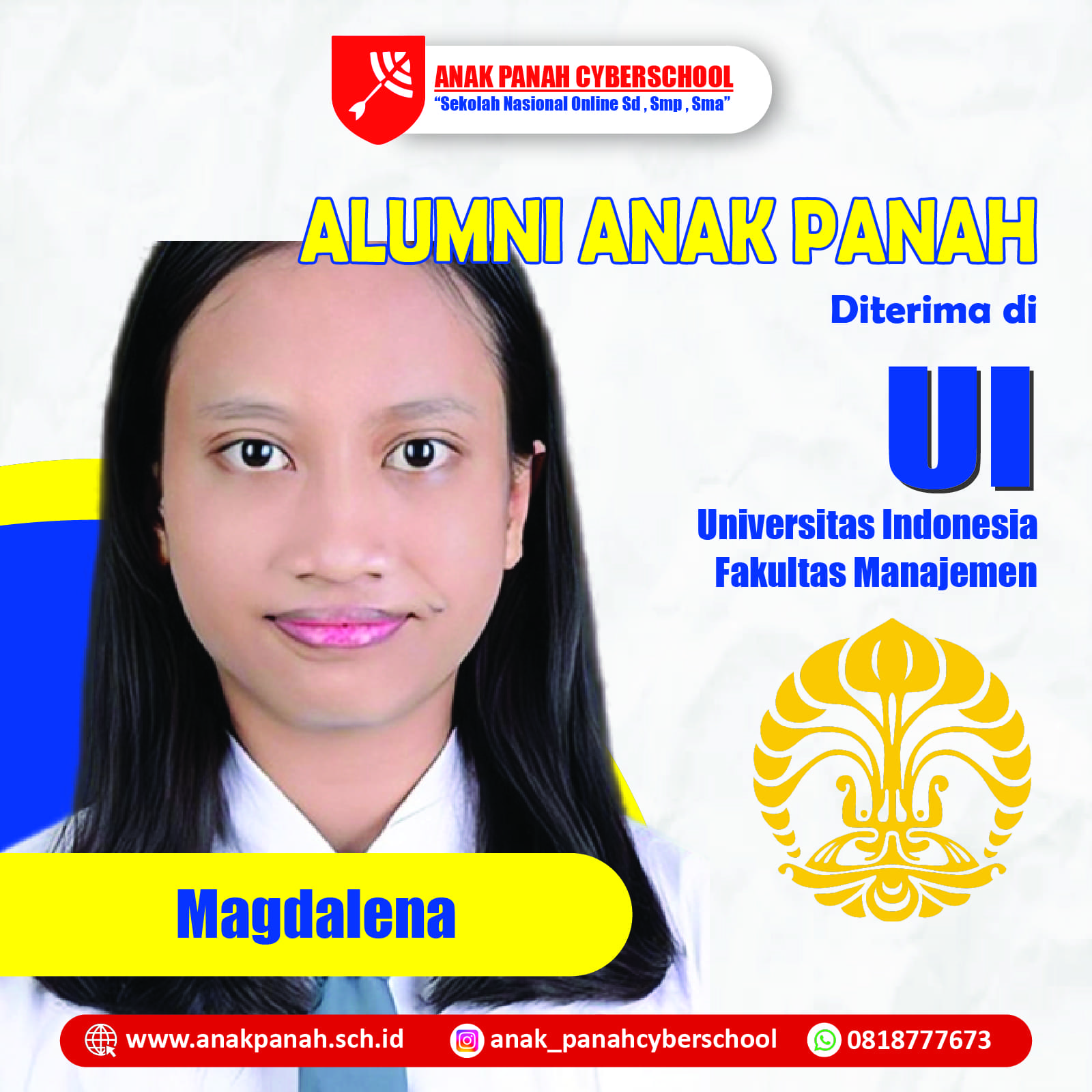 "Terima kasih Anak Panah atas bimbingannya, saya berhasil diterima di UI!"