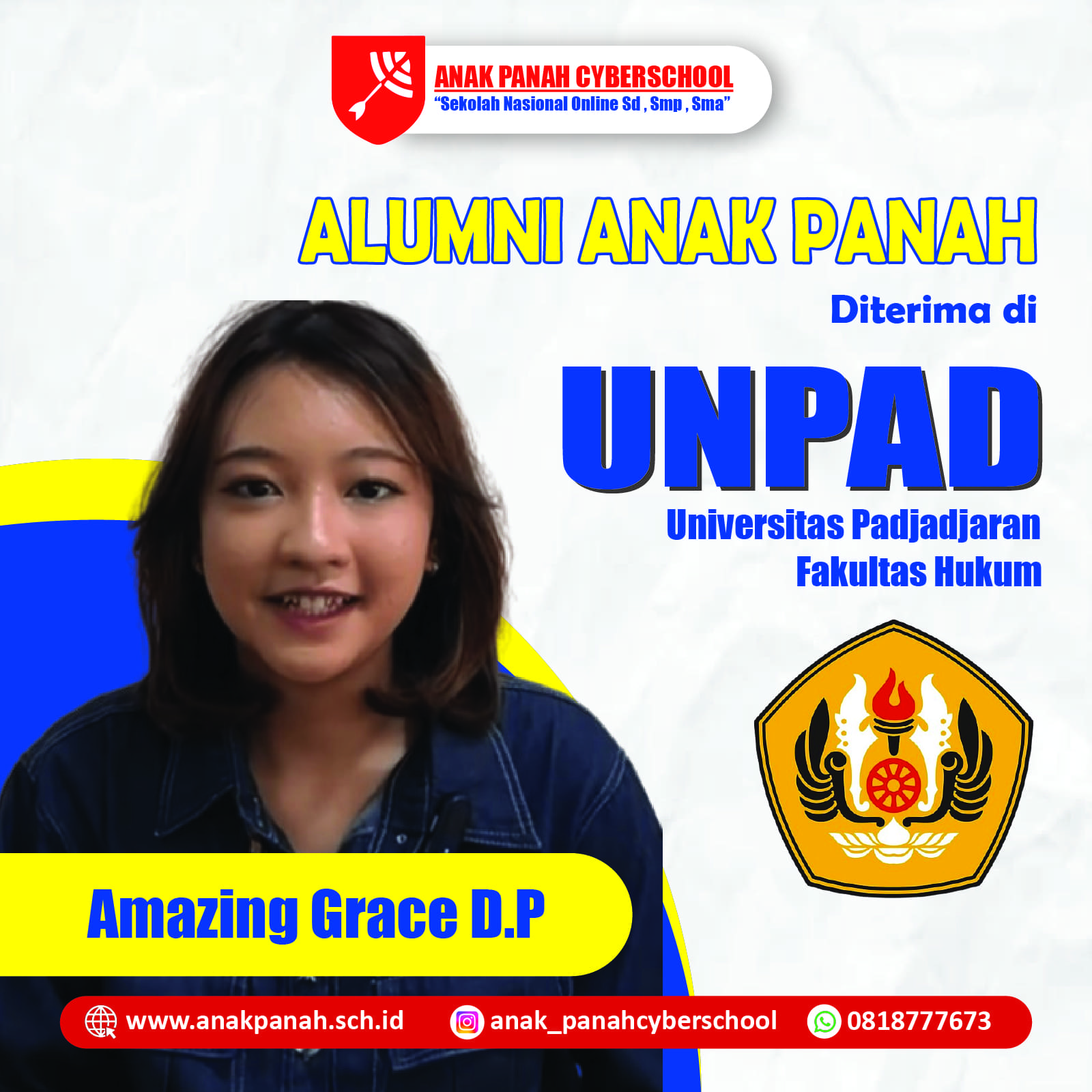 "Bimbingan Anak Panah membawa saya ke Fakultas Hukum Universitas Brawijaya. Terima kasih!"